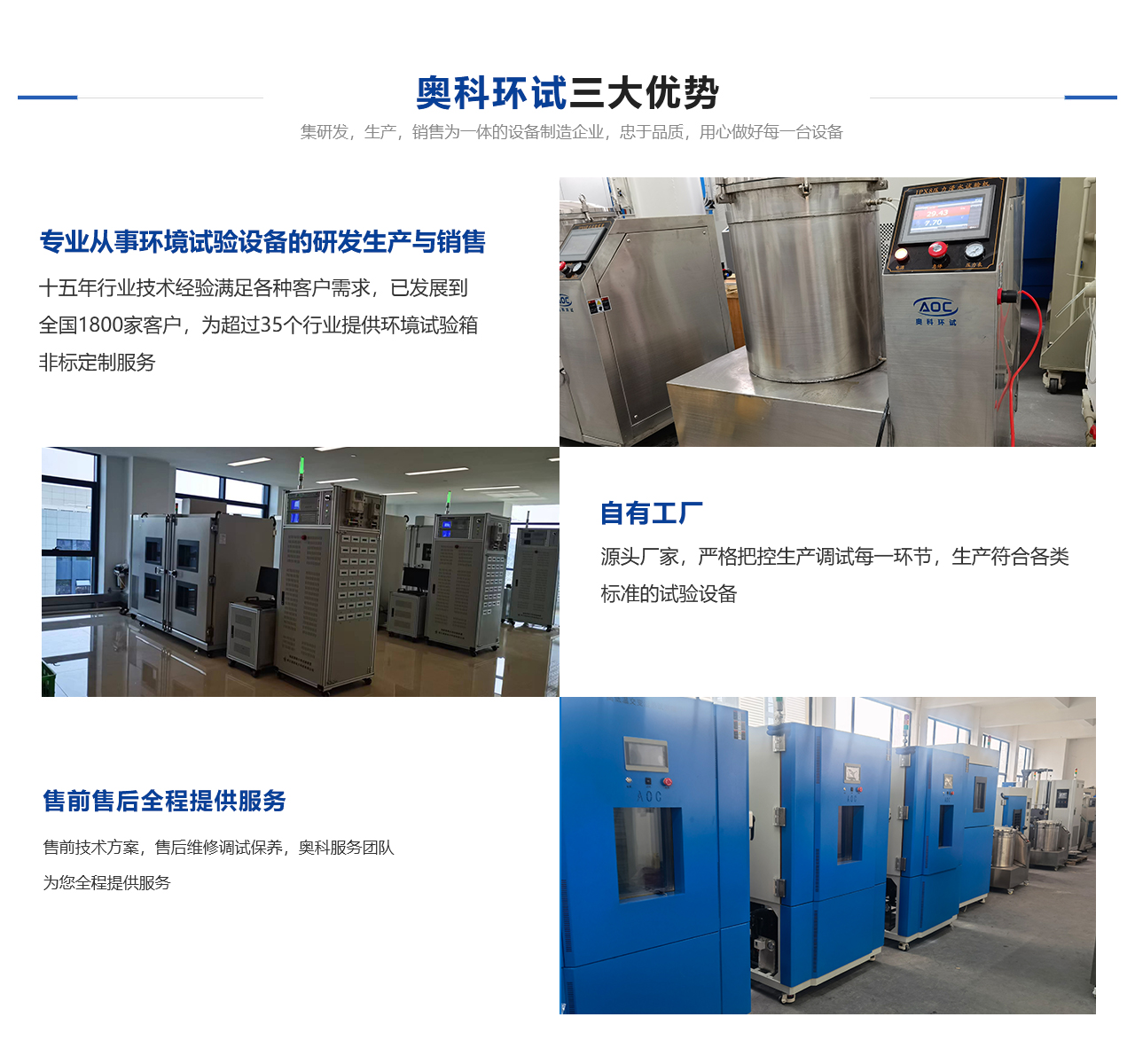 安徽奧科試驗(yàn)設(shè)備有限公司隸屬于杭州奧科環(huán)境試驗(yàn)設(shè)備有限公司直屬分公司,是一家從事各種試驗(yàn)設(shè)備研發(fā)、生產(chǎn)與銷售一體的技術(shù)單位。總公司擁有強(qiáng)大的技術(shù)團(tuán)隊(duì)及科學(xué)嚴(yán)謹(jǐn)?shù)纳a(chǎn)流程,鑄就了產(chǎn)品質(zhì)量。公司本著“以質(zhì)量求生存,以信譽(yù)求發(fā)展”的原則,為科研、軍事、航空、電子、汽車、石油、化工、醫(yī)療、通訊等各大院校和企事業(yè)單位提供符合GB、GJB、IEO、ISO、ASTM、MIL、DIN等標(biāo)準(zhǔn)的各類環(huán)境試驗(yàn)設(shè)備,并可根據(jù)用戶的需求設(shè)計(jì)制造各類非標(biāo)性設(shè)備。奧科奉行“進(jìn)取求實(shí)嚴(yán)謹(jǐn)團(tuán)結(jié)”的方針,不斷開拓創(chuàng)新,以技術(shù)為核心、視質(zhì)量為生命、奉用戶為上帝,竭誠(chéng)為您提供高性價(jià)比的自控產(chǎn)品及無微不至的售后服務(wù)。